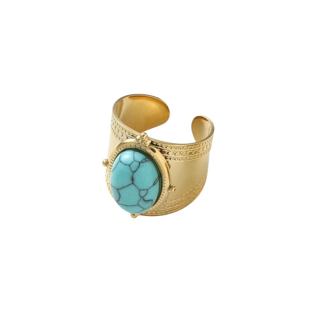 Soyez le premier à laisser votre avis sur “Bague avec pierre naturelle turquoise ajustable or”