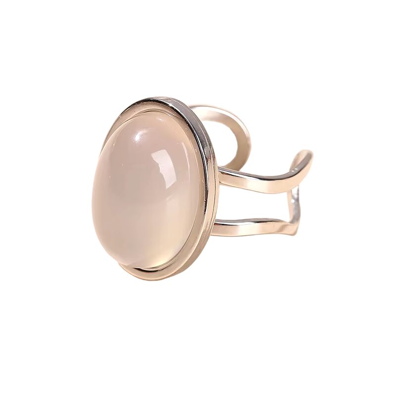 Bague pierre naturelle agate blanche argent ovale