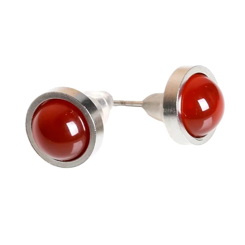 Boucles d’oreilles pierres naturelles agate rouge rondes