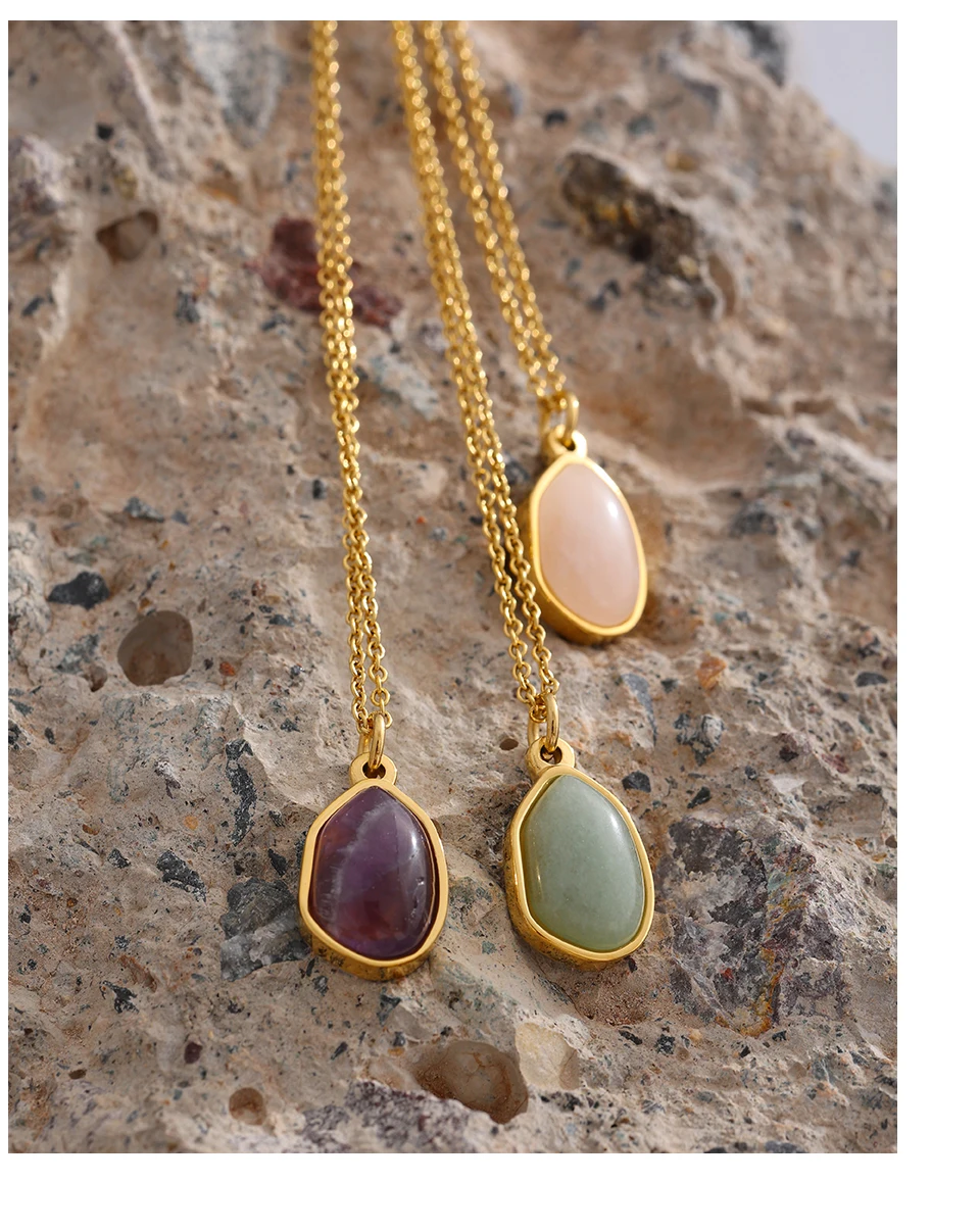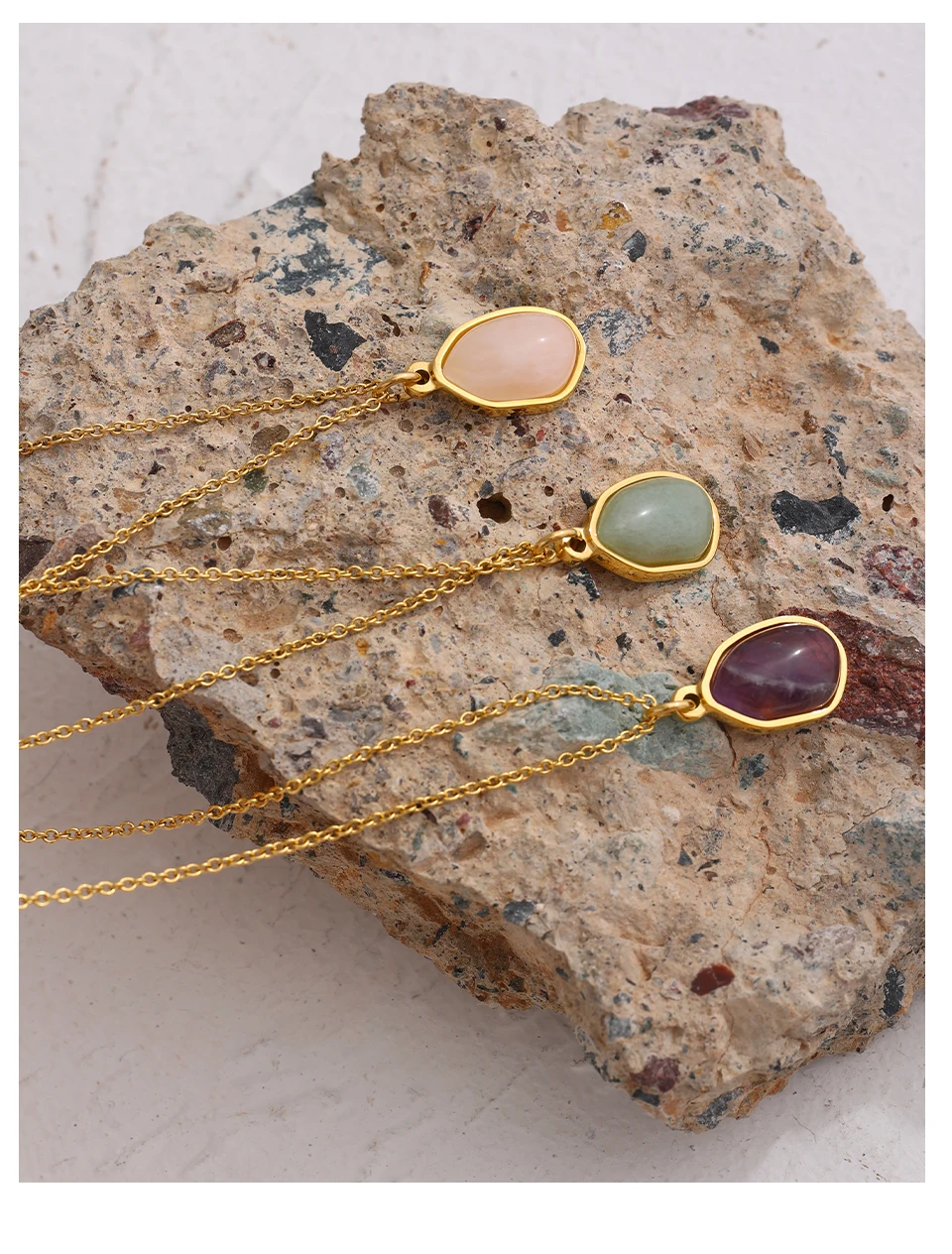 Soyez le premier à laisser votre avis sur “Collier doré avec pendentif irrégulier de pierre naturelle aventurine”