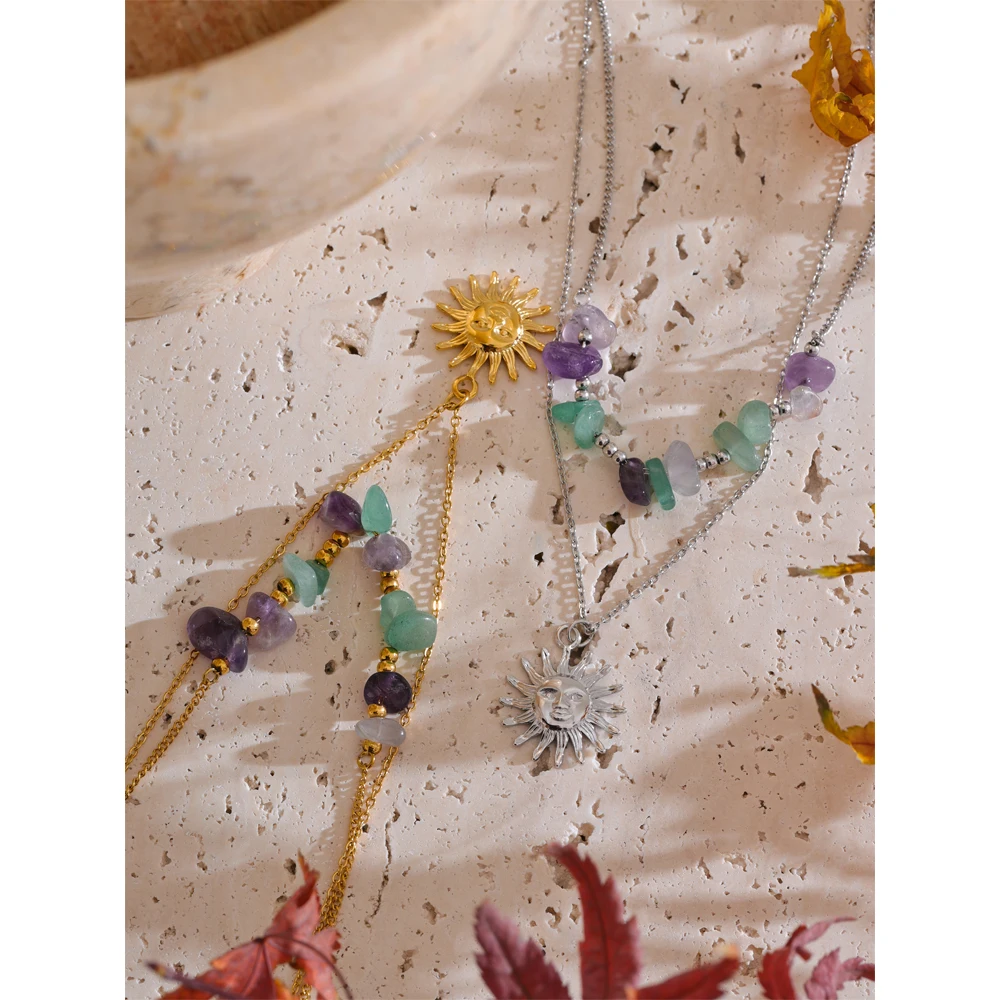 Le Double collier argenté avec pierres naturelles vertes et violettes est bien plus qu’un simple accessoire, c’est une véritable pièce de mode qui saura mettre en valeur votre tenue, que ce soit pour une sortie entre amis ou une occasion spéciale. Son design tendance et élégant le rend parfait pour les femmes modernes qui souhaitent exprimer leur style unique. Fabriqué en acier inoxydable, ce collier est à la fois robuste et esthétique, garantissant ainsi une durée de vie prolongée. Les pierres naturelles vertes et violettes ajoutent une touche de couleur et d’originalité, faisant de ce collier un indispensable de votre garde-robe.